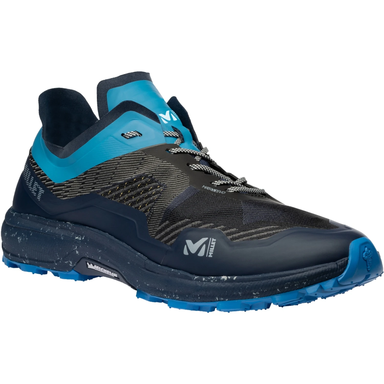 Light, comfortable and extremely durable, these futuristic trail running shoes made in France in the ASF 4.0 factory, a partner of MILLET, use a Michelin sole and a French Matryx textile upper with patented technology. The latter is made of nylon and Kevlar for extra strength, while a lightweight stone guard reinforces the entire perimeter of these men’s trail running shoes. The Michelin Reattiva outsole provides stable grip and plenty of traction to help you pick up speed on the trail. Weighing in at just 500 grams, these trail running shoes feature a precise self-locking lace-up closure and a partially recycled EVA midsole for comfortable cushioning.