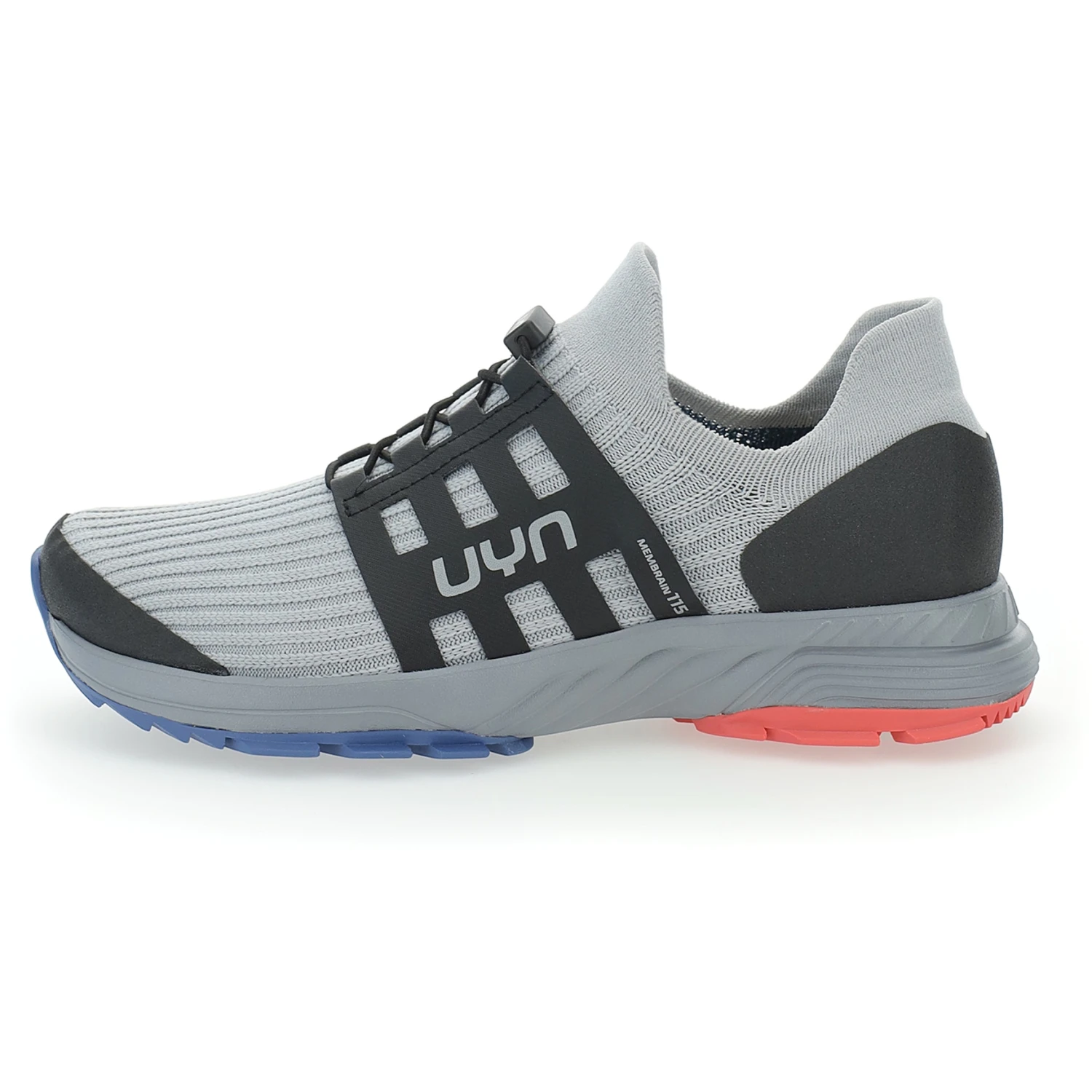 Lacing system with traditional laces designed to ensure maximum adhesion to the shoe. LACE FRAME in recycled microfiber with MEMBRAIN115 embroidery on the side.